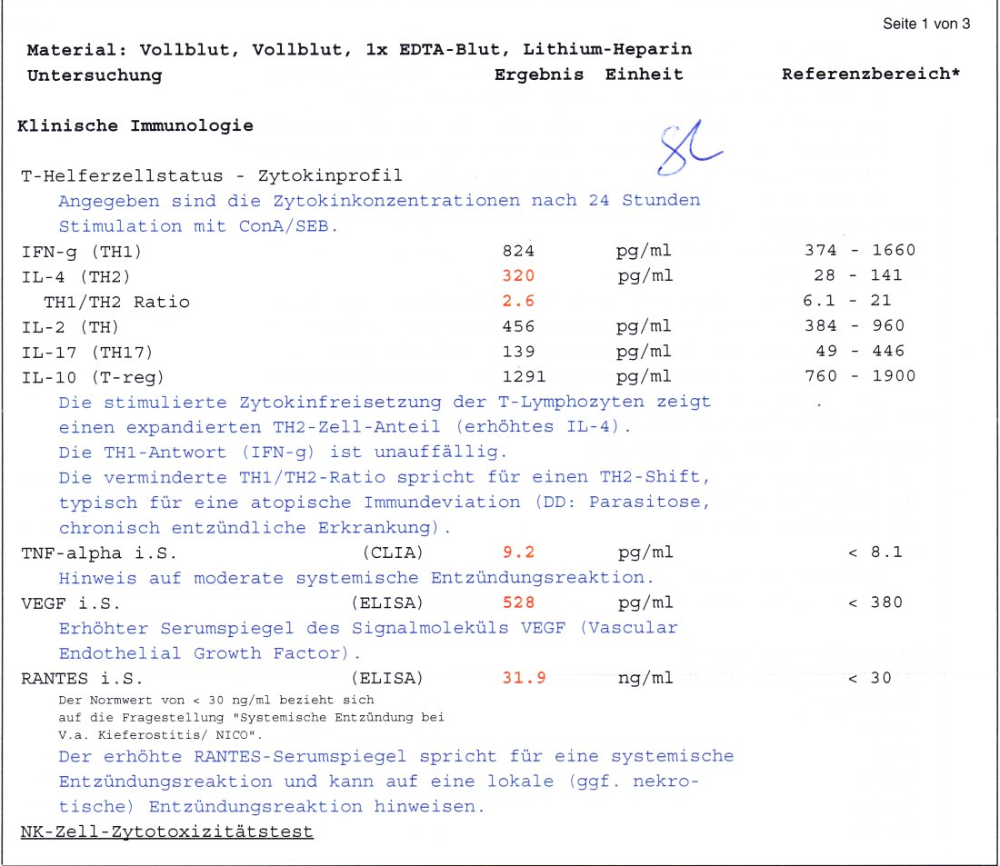 Ich warte auf die Befunde vom Labor. Im Zusammenhang mit IL war auch TNF-Alpha dabei. Berichte sobald ich die Werte habe