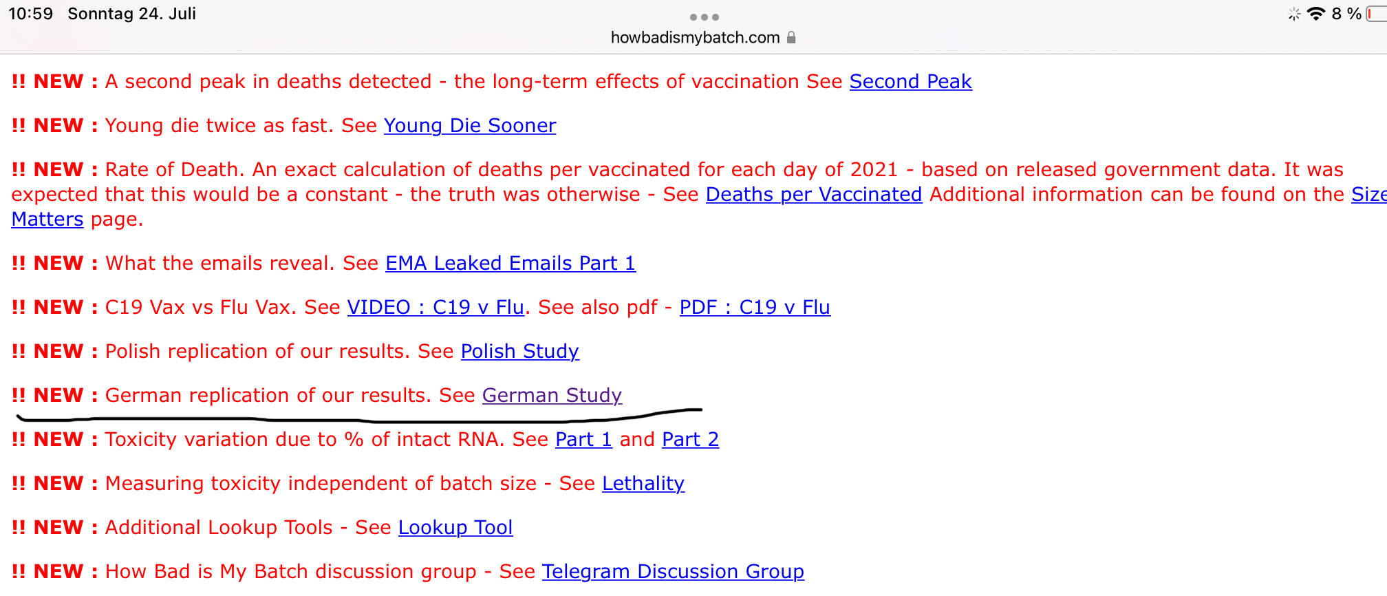Ich habe keine Ahnung welche Interessen hinter der genannten Webseite stehen und kann nicht beurteilen wie solide die Datengrundlage tatsächlich ist. Die Datenanalyse ist recht detailliert und die ausgeführten Schritte erscheinen mir logisch. Dennoch kann es sich genauso gut um eine sehr selbstbewusste Darstellung von ungeeigneten Daten handeln! In einer der verlinkten „Quellen“ wird zudem von „Biowaffen“ gesprochen, daher sollte man das Ganze mit mehr als nur einem „grain of salt“ nehmen. Dennoch möchte ich die Kernaussagen knapp übersetzt darstellen, da sich hier vermutlich nicht jeder mit dem Originalartikel auseinandersetzen will oder kann.