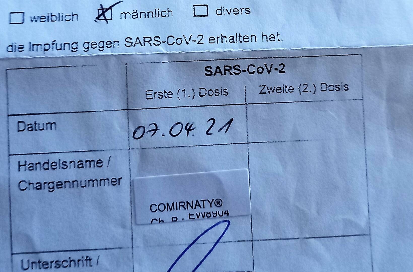 1. Biontec 21.05.2021 2. Biontec 19.07.2021