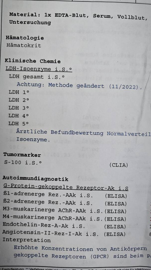 - @m-s Vielen Dank für die Übersicht! Ich habe eine Frage bezüglich der Autoantikörper. Ich kann es nicht richtig lesen - sind das Autoantikörper gegen Neurotransmitter? Falls ja, in welchem Labor hast du das testen lassen? Liebe Grüße