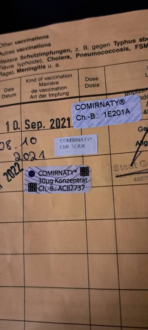 m, 59. 2x Biontec, zuletzt 08/2021. Chargennummer 2.Impfung: FF0900