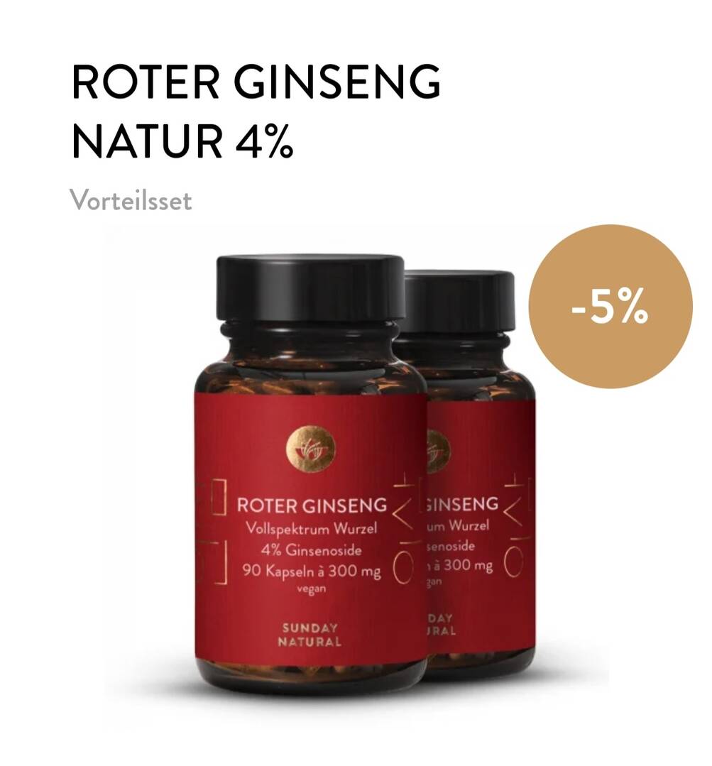 Das Gingseng ist von Sunday medical man kann 3 Kapseln am Tag nehmen, aber ich komme bis jetzt mit 2 aus.