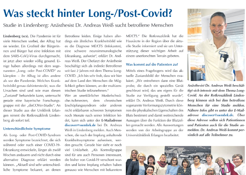 Schreibt auf Seite 14 (Siehe auch Bild) das die Rotkreuzklinik Lindenberg nun auch an der "disCOVer-Studie" Teilnimmt.