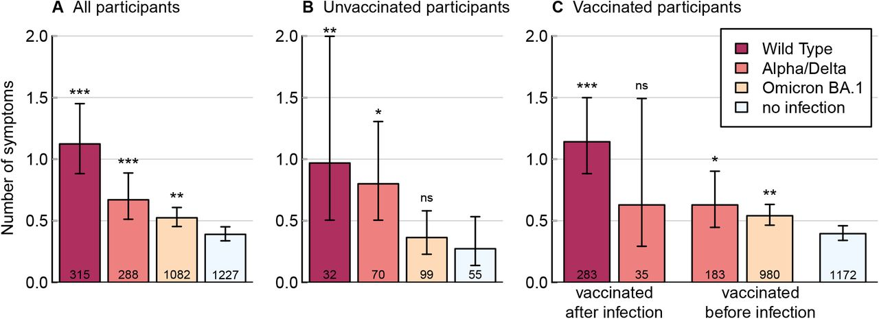 Association of viral variant and vaccination status with the occurrence of symptoms compatible with post-acute sequelae after primary SARS-CoV-2 infection