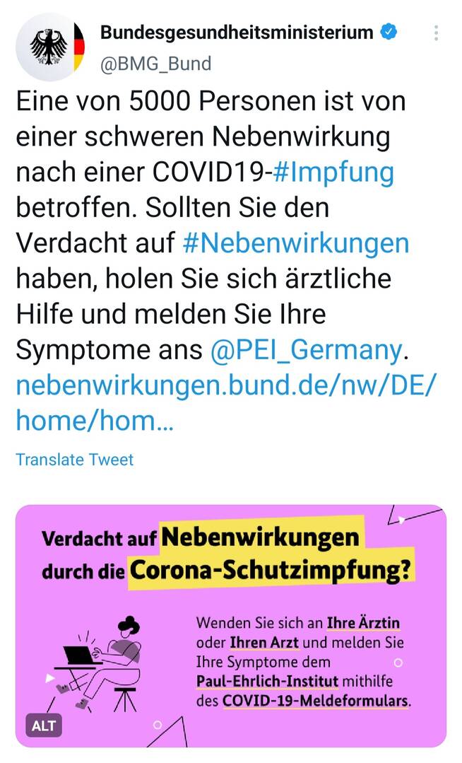 Jetzt in dieser Woche - merkwürdigerweise während seiner Reise in die USA - erklärt das BGA das Verhältnis von 1:5000, und beim genauen Hinsehen - das will ich hier mal nicht kommentieren (!) - kommt dann die simple Aussage, autsch, das war ja zu jeder einzelnen Impfung betrachtet - dann die lineare Betrachtung von 2 Dosen - 1:2.500, 4 Dosen - 1:1.250 oder gar 5 Dosen 1:1000.