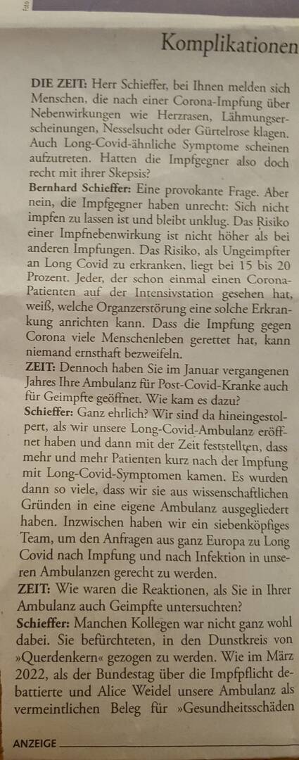 @marcel naja es wird gesagt er mutmaßt das. Aber nehmen wir an es wäre so, was bedeutet das dann für uns? Nachdem die Impfung ja nicht vor Ansteckung schützt, sind wir dann halt gefährdet Post Vac zu bekommen nach Impfung und im Fall einer Infektion Long Covid. Ich persönlich denke dann eigentlich nicht dass ich mich nochmals impfen lassen werde, denn Long Covid kann ich bei der Infektion dann trotzdem noch bekommen. Das wäre jetzt für mich der logische Punkt. Oder übersehe ich da was?