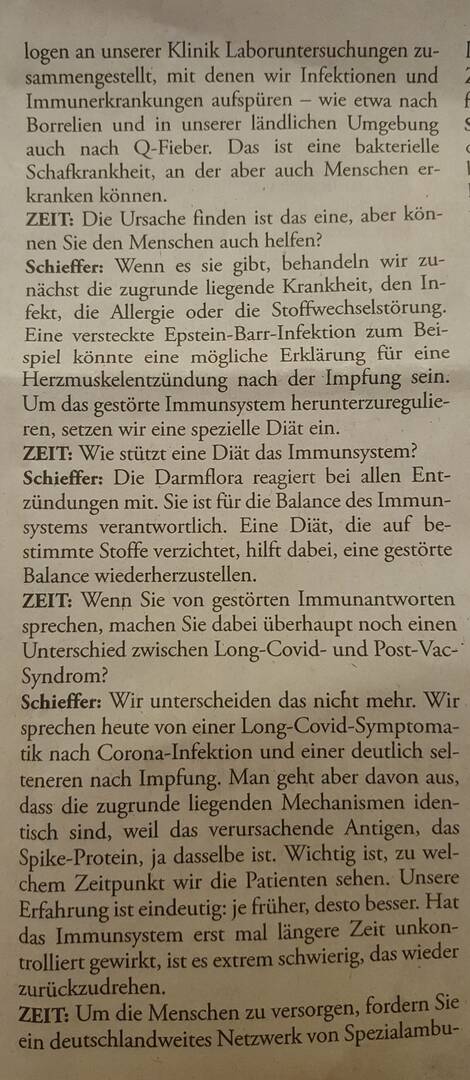 Hier sagt Prof. Schieffer, dass die Post vac Patienten die gleichen Symptome auch durch die Infektion bekommen hätten. Aber das stimmt ja nicht. Wie viele von uns hatten vorher Covid, ohne starke Probleme. Oder im Verlauf eine Infektion die teilweise sogar Besserung hervorgerufen hat. Das verschafft in der Bevölkerung ja ein falsches Bild 😪 genau diese Argumente möchte man ja nicht hören: "sei froh, dass du es von der Impfung hast, bei Corona hätte es dich viel schlimmer getroffen."