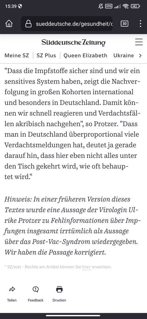 Leider hinter Bezahlschranke. Vielleicht hat jemand den ganzen Text und kann ihn hier posten. Ich sag nur "Die Dosis macht das Gift" wenn jemand erst nach der zweiten oder nach der Booster Impfung an post-vac erkrankt.