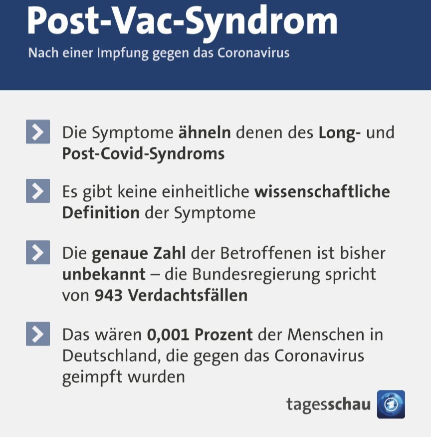 Die meisten Leute und Medienanstalten in Deutschland sehen das Problem einfach nicht. Ein gutes Beispiel ist der Instagram Post der Tagesschau zu dem Thema Post VAC. Ich denke damit ist alles gesagt.