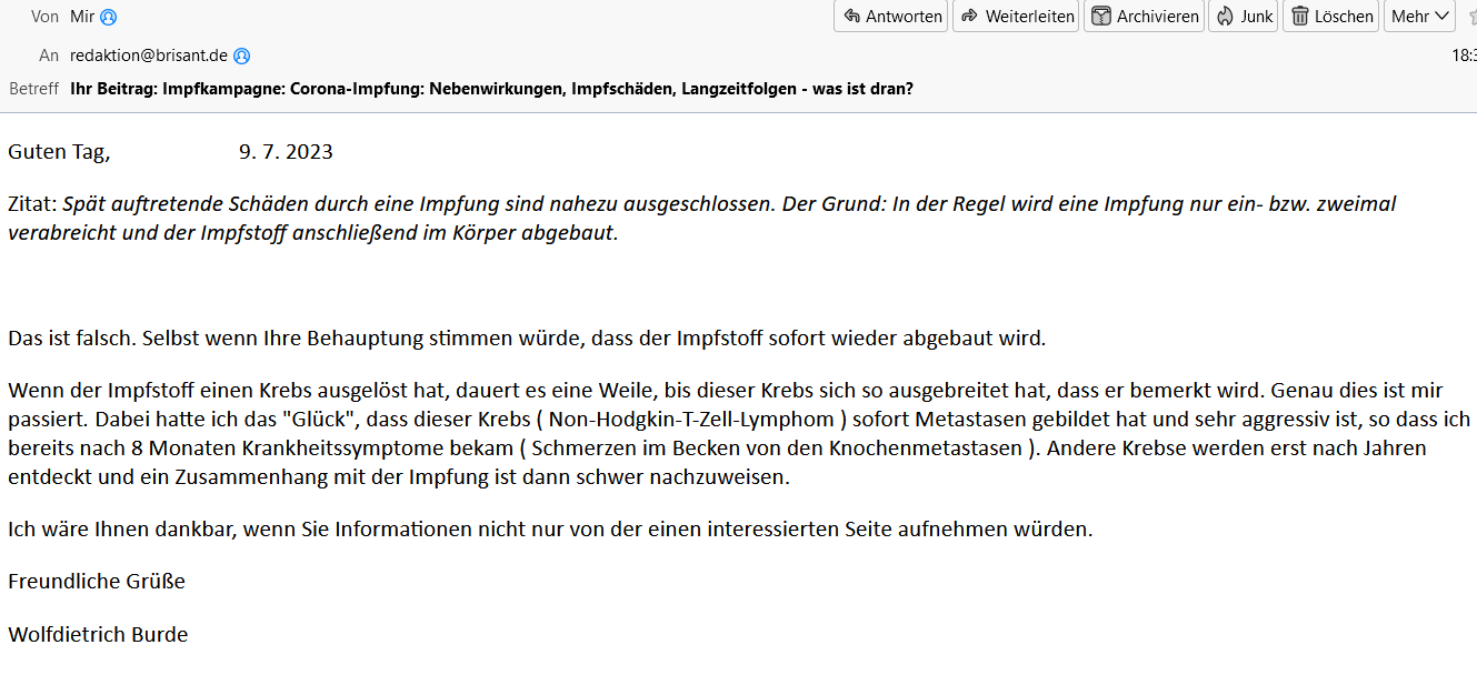 Neues Thema zu dem Zeitartikel vom 6. 7. 23 über Impfschäden: