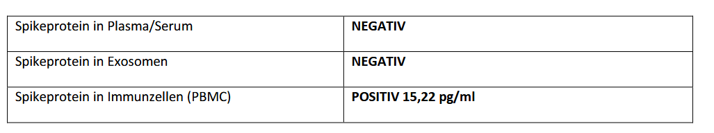 Ich habe nun auch meine Ergebnisse erhalten und es wurden nur Spikeproteine in den Immunzellen gefunden, was ziemlich schlecht ist oder?