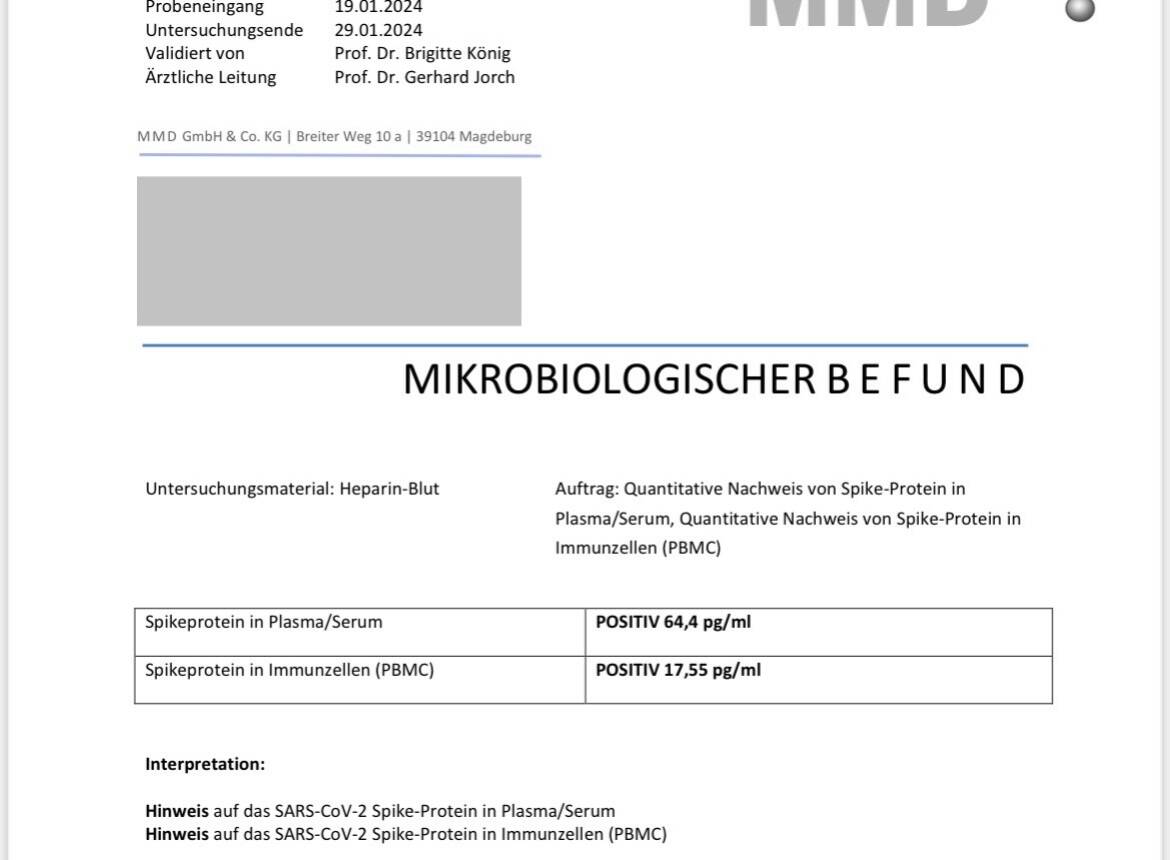 Meines Wissens nach können sich diese aber in Blut- u/o Gewebezellen verstecken. Diese gebundenen Spikes untersucht das Labor IMD nicht. Das macht das Labor MMD. Die Aussagequalität ist aber umstritten
