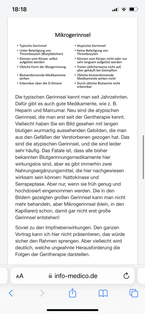 Der Arzt erwähnt auch, dass Nattokinase und Serrapeptase in hohem Dosen frühzeitig eingenommen bei vielen hinsichtlich Mikrogerinnsel (nicht großen Gerinnsel) wirken.